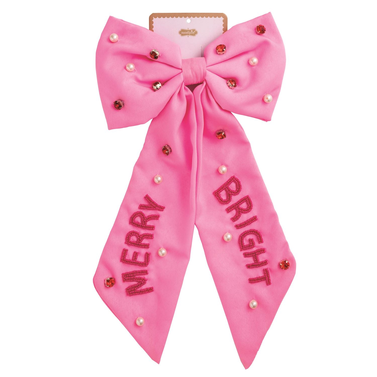 Add sparkle to your holiday look with this playful cotton bow hair clip, thoughtfully hand-embroidered with shimmering rhinestones and delicate seed beads. Its festive charm and comfortable fit make it the perfect accessory for joyful celebrations and everyday fun.
