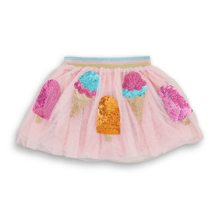 The Ice Cream Sequin Tutu is a delightful and whimsical addition to any little one's wardrobe. This enchanting tutu features multiple layers of soft mesh fabric, creating a voluminous and playful silhouette perfect for twirling and dancing. Adorned with sparkling sequin icons, it captures the magic and fun of a sweet ice cream theme, adding a touch of sparkle to any outfit. The lurex elastic waistband ensures a comfortable and secure fit, allowing for easy wear and movement. Designed to fit medium to large sizes, specifically for ages 3T to 5T, this tutu is crafted from 100% polyester, ensuring durability and easy care. Ideal for dress-up, parties, or everyday fun, this tutu is sure to bring joy and excitement to any occasion.