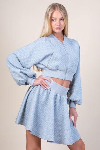 Stay cozy and on-trend with our In The Clear Quilted Jacket Set in Grey. This set features a zip long sleeve jacket and an elastic band skirt, providing both style and comfort. The puff sleeves on the jacket add a touch of femininity to the overall look. Stay fashion-forward in any weather with this versatile set.