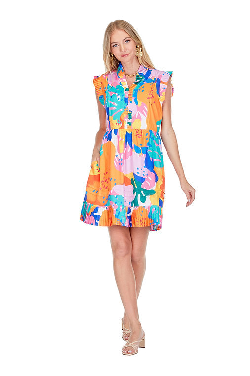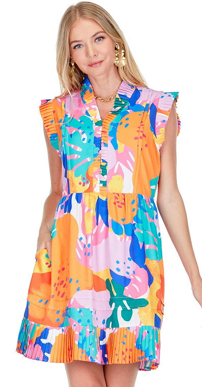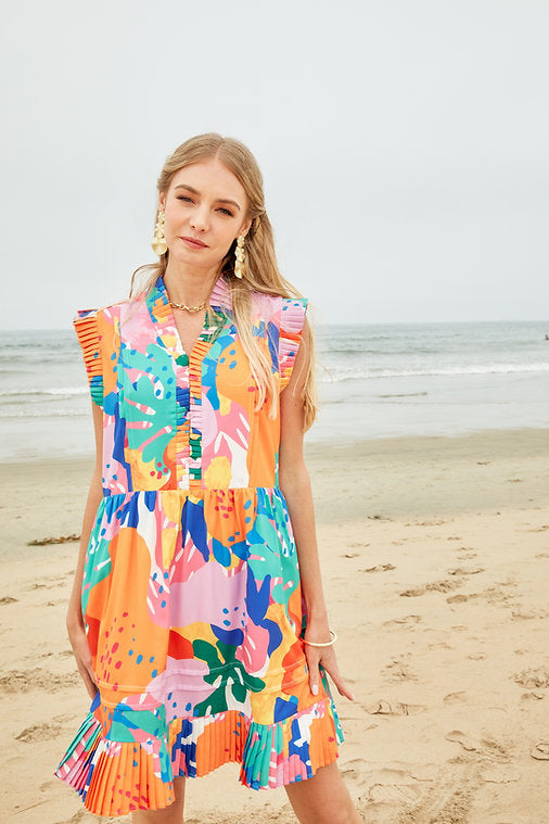 Get ready to flutter with joy in our Mini Pleated Dress! With a v neck and flutter sleeveless design, this knee-length dress is perfect for any occasion. Bring out your inner Fantasia with this playful and stylish dress!