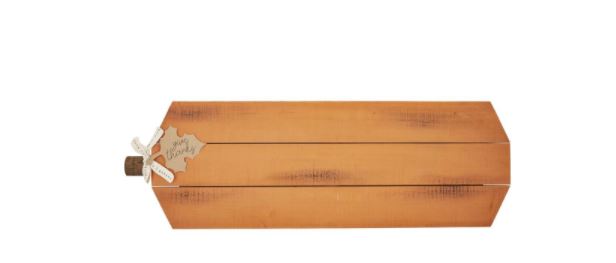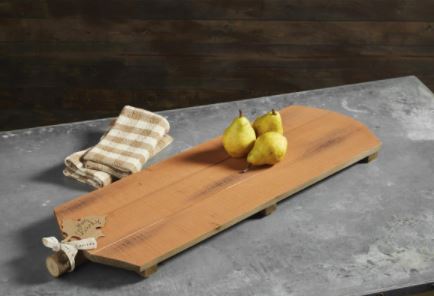 Gather around and enjoy treats on our orange pumpkin serving board. The hand-painted planked mango wood board features a pumpkin-like appearance. The board also features a wooden bark stem that has a tag that reads "Give Thanks". The pumpkin board features a distressed finish with unique markings.