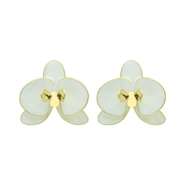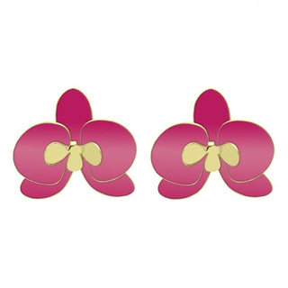 Handmade in Brazil. These sweet orchid studs are hand painted over 18K Gold Plated.