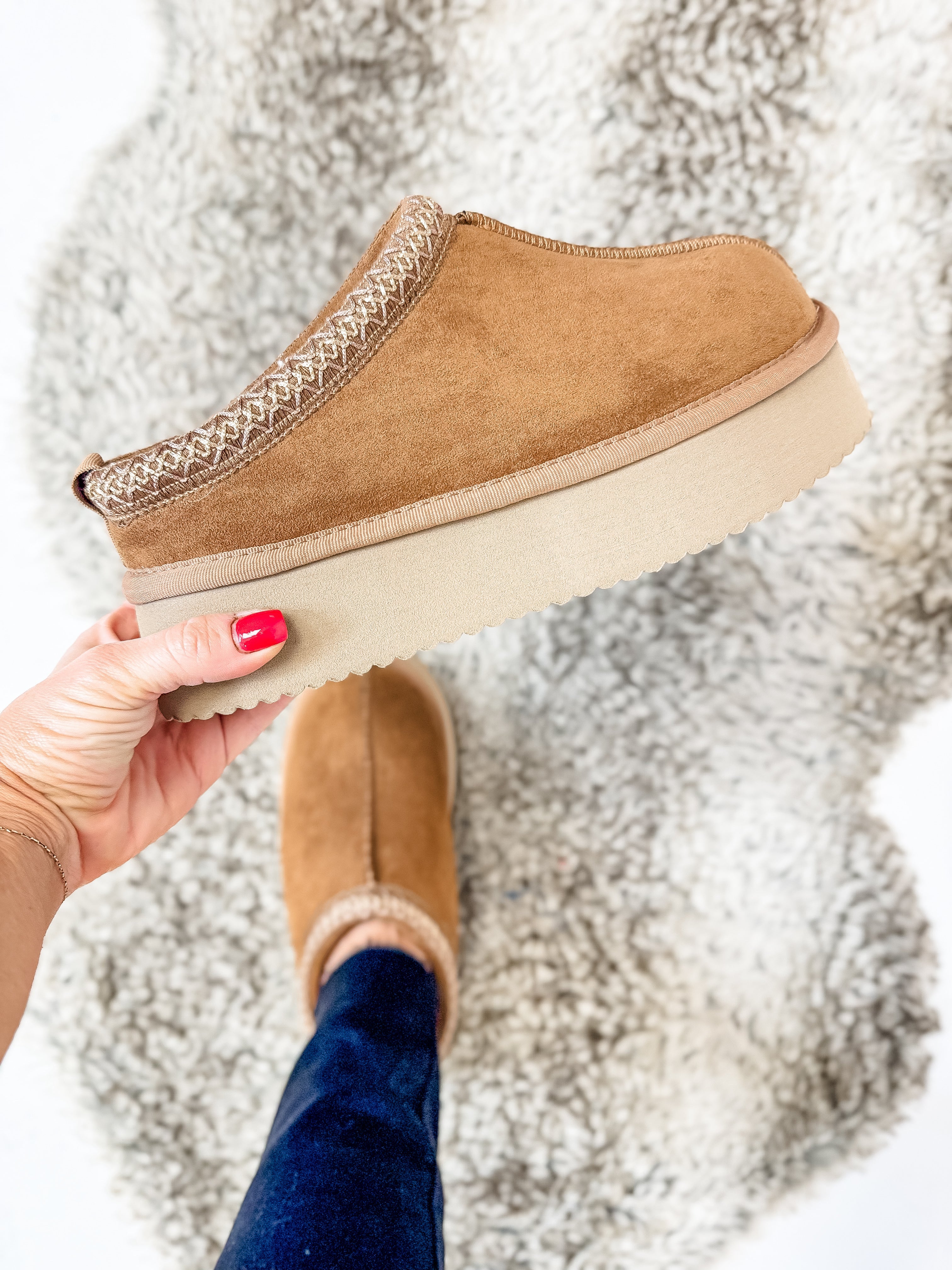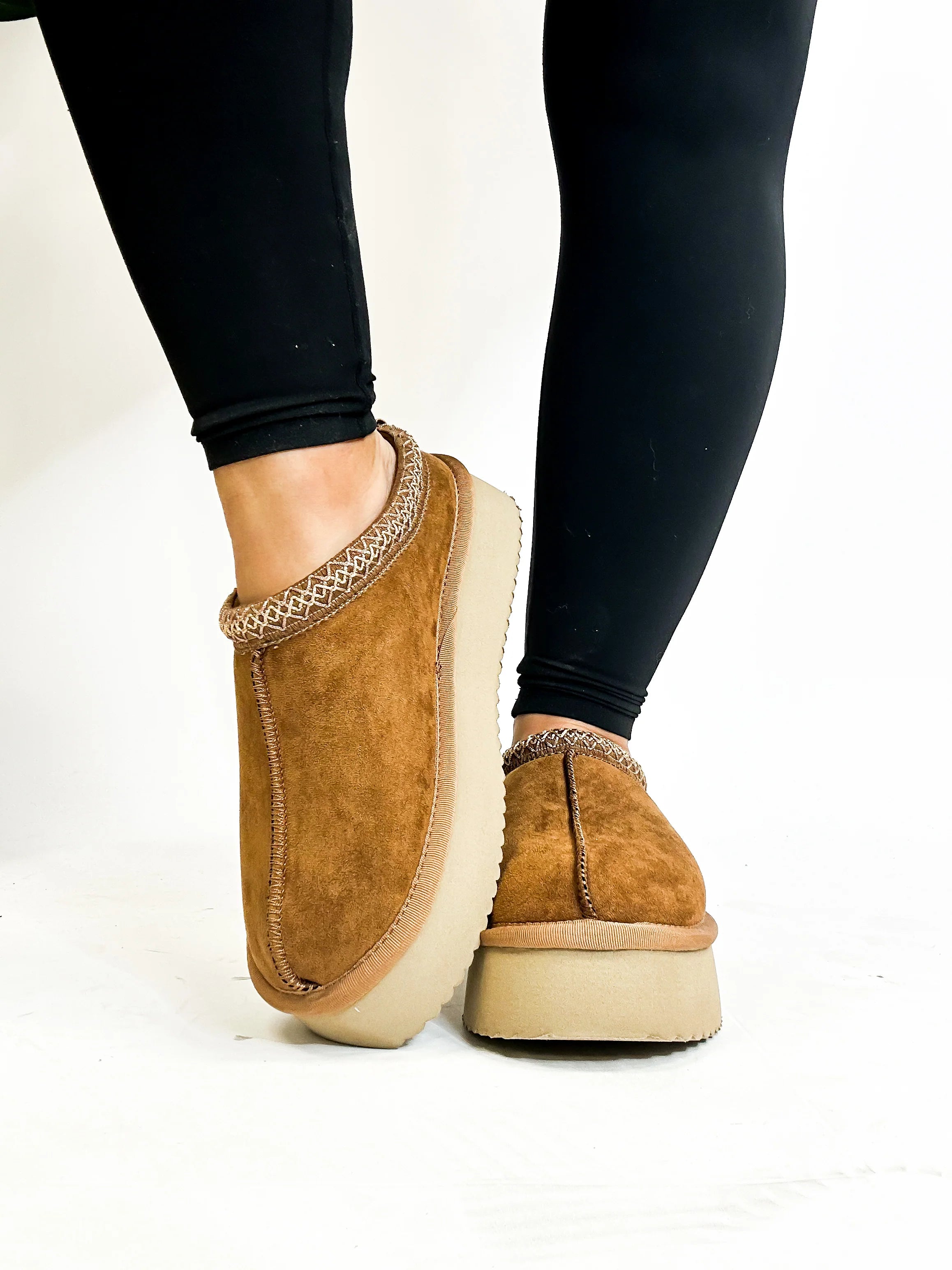 Experience elevated style with Pillow Talk Platform Slide • Tobacco Faux Suede. These luxurious platform shoes exude sophistication with a subtle yet intricate stitch design, elevating both your fashion and function. Step confidently and add a touch of exclusivity to any outfit with added height.