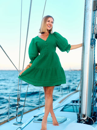 The Raya Dress is a charming blend of timeless details and modern elegance. Featuring self-covered buttons and pintuck accents, it exudes a refined, tailored look. The 3/4 sleeves with subtle puff shoulders add a touch of femininity, while the convenient pockets offer practicality without sacrificing style.