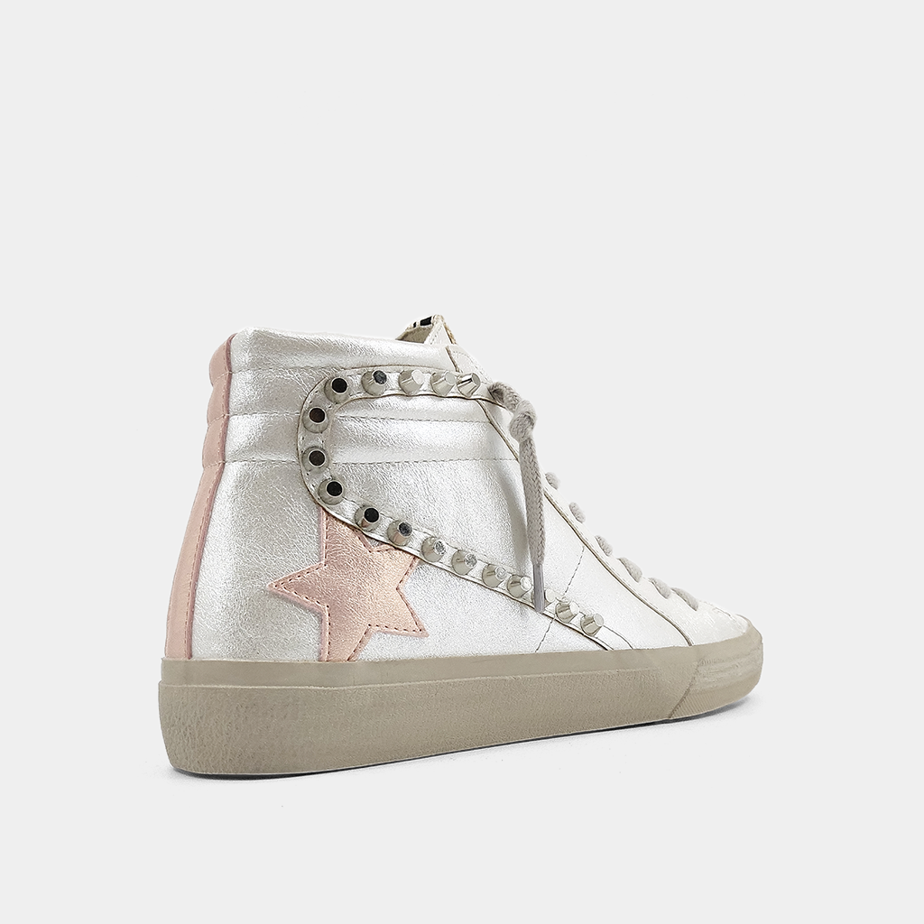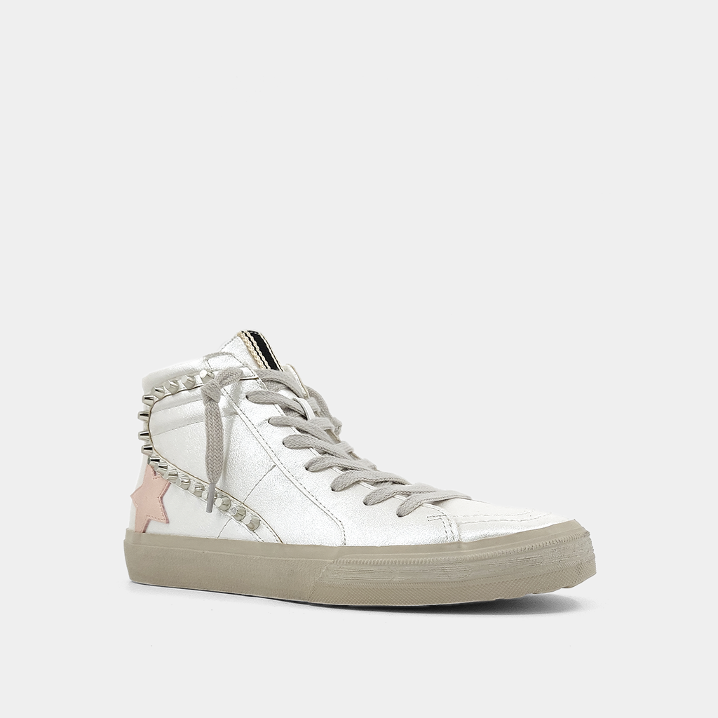 RIRI merges vintage sneakers with a cool rock 'n roll attitude. Crafted from faux leather and detailed with metallic studs, these high-top sneakers deliver a hardcore blend of retro style and cool. Wear yours with everything from dresses to jeans.
