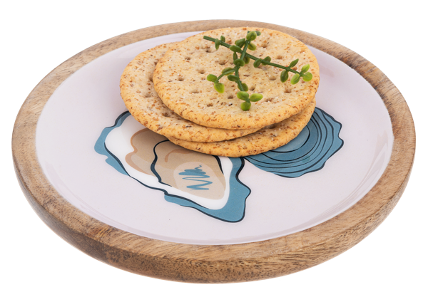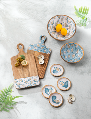 Add some coastal charm to your next gathering with the Round Oyster Tidbit Tray. This colorful, multi-dimensional tray measures 6" x 6" x 5/8", perfect for serving up delicious bites and snacks. (Sea-worthy food puns not included.)