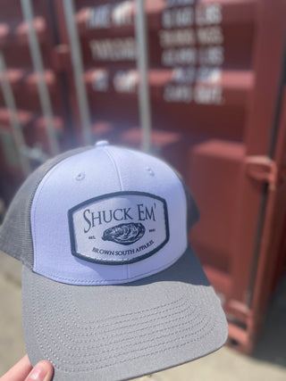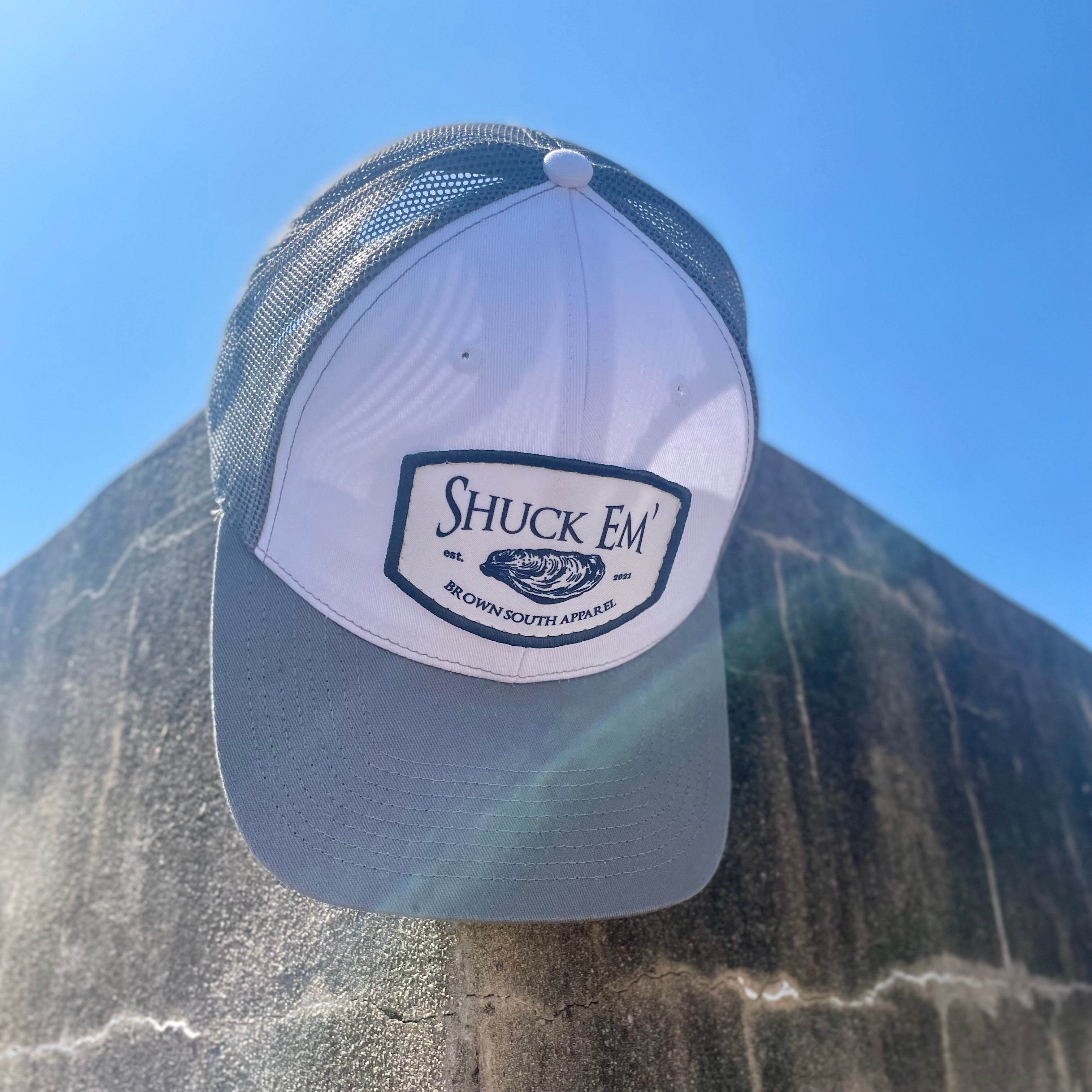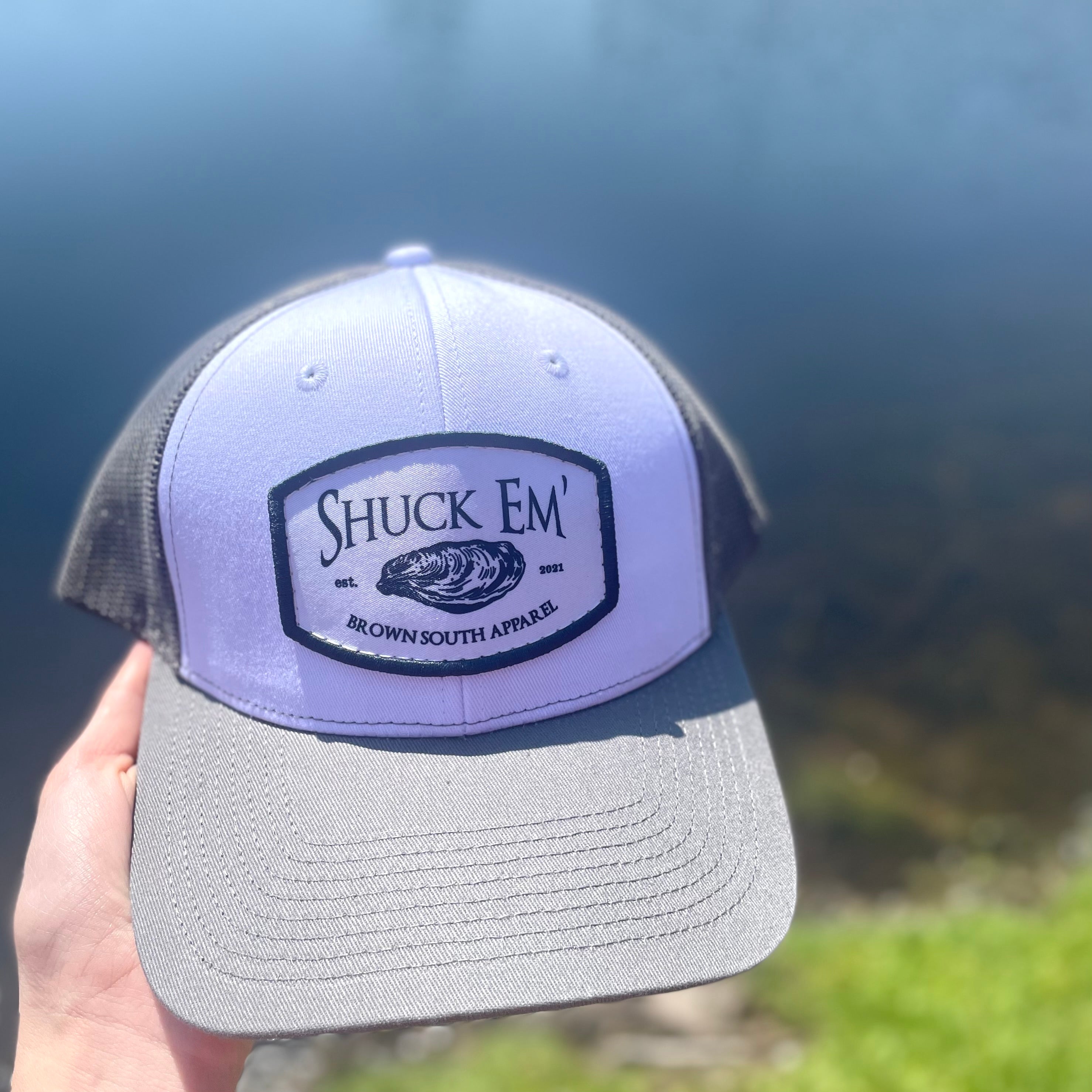 Get ready to shuck up your style with our Shuck Em' Trucker Hat! Made by Brown South Apparel and featuring an exclusive "Shuck Em'" patch design, this hat is perfect for anyone looking to add a bit of humor and quirkiness to their wardrobe. Show off your unique style with this limited edition hat, only available at Tonya's!