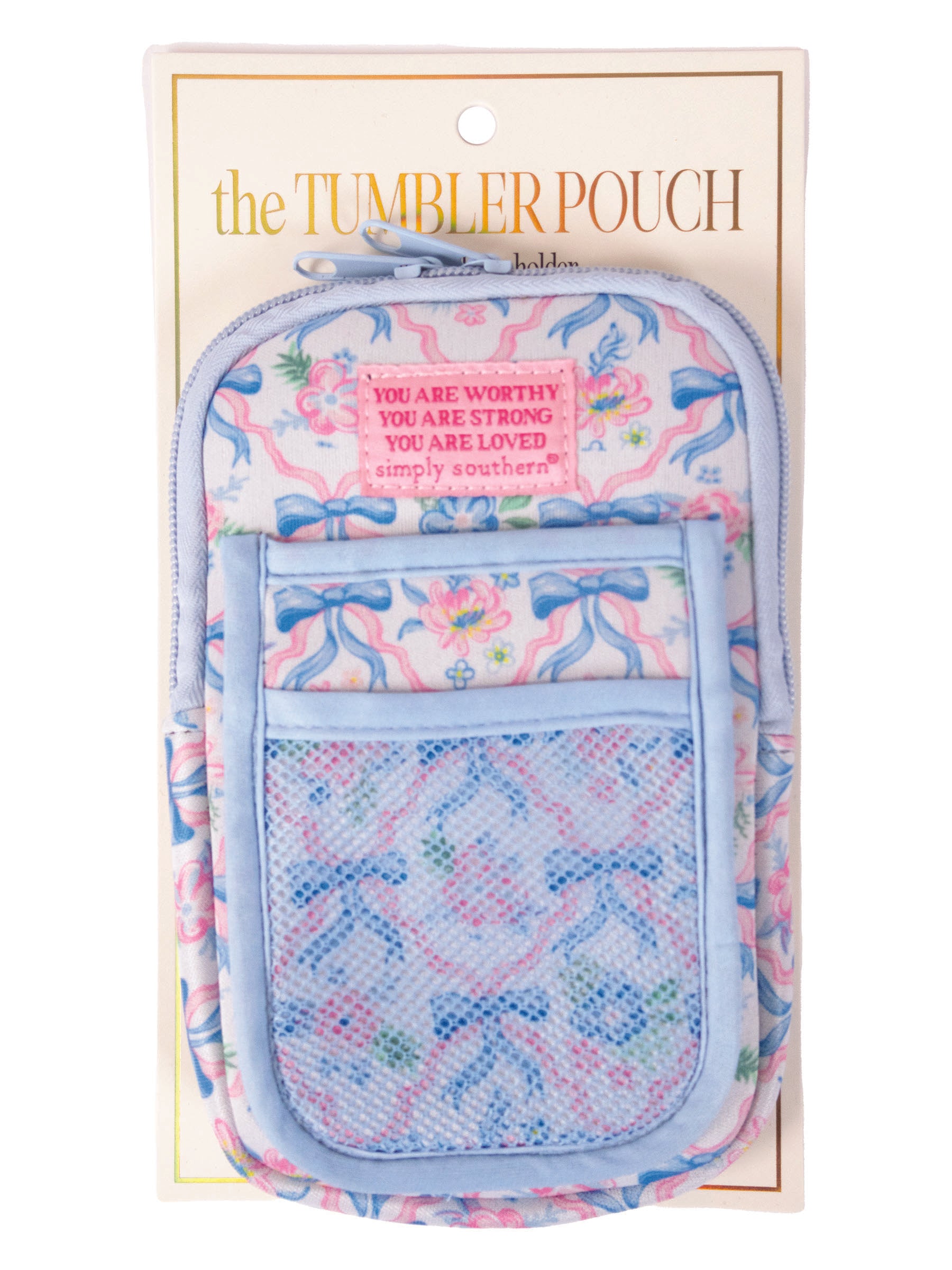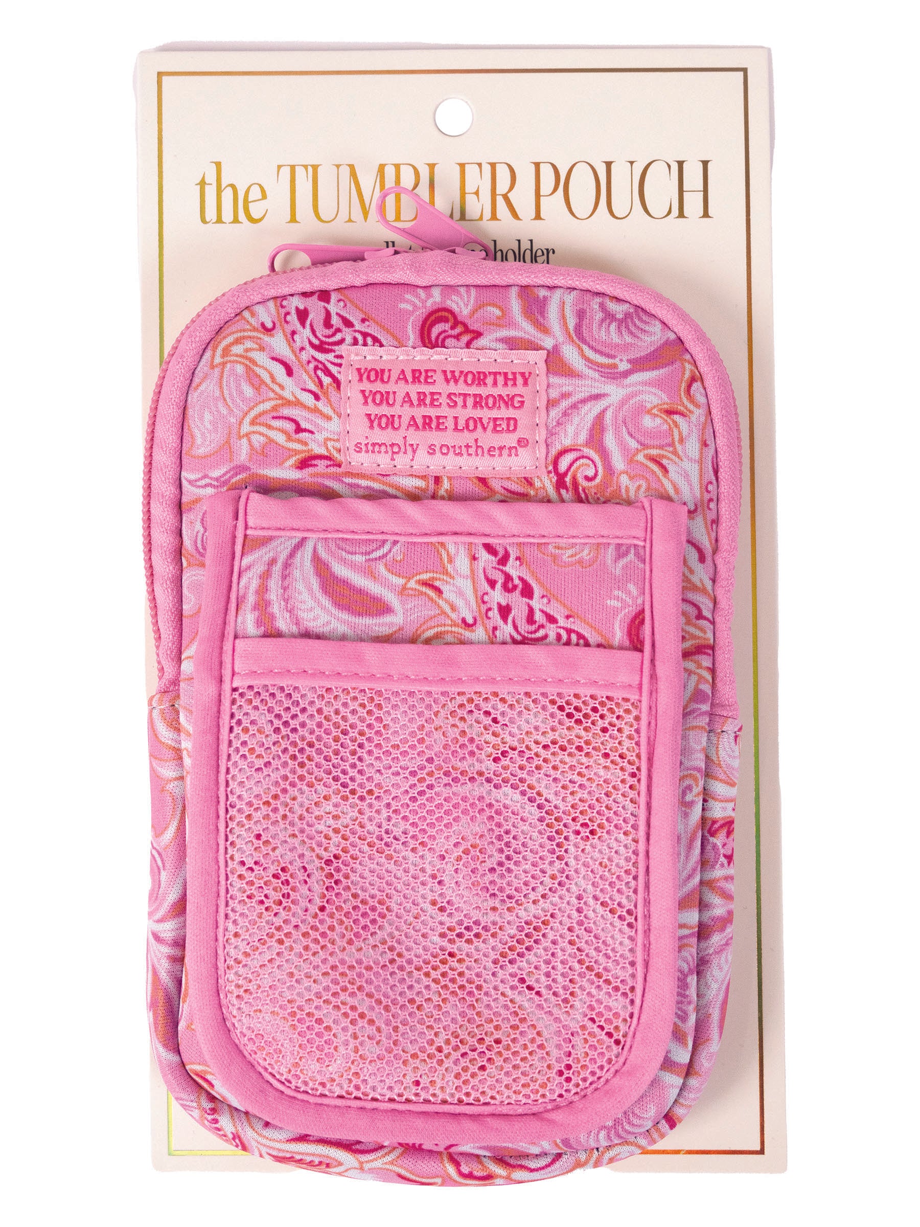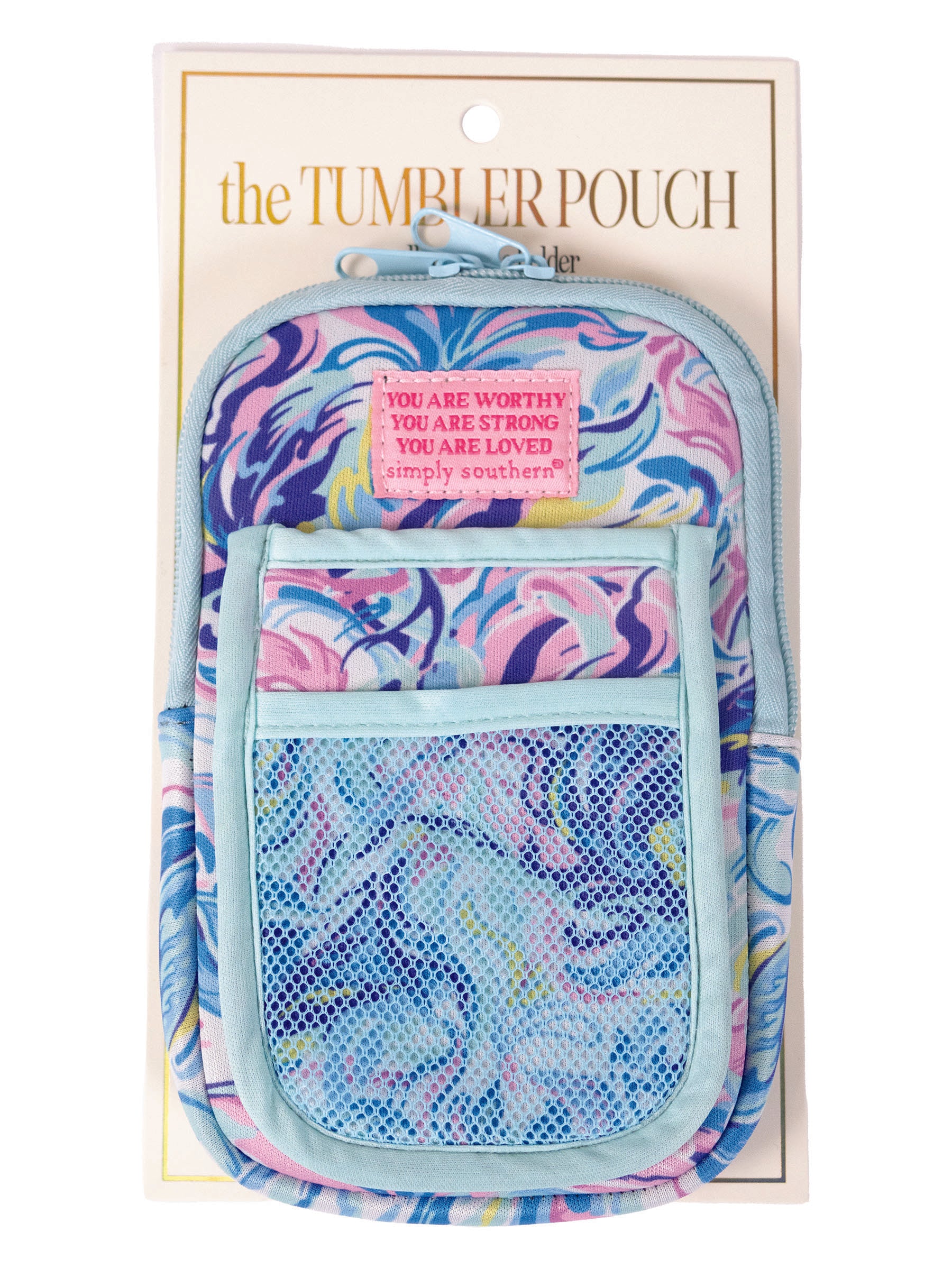 Spruce up your everyday tumbler with these tumbler pouches. Featuring a large zipper pouch and velcro wrap attachment, these pouches are perfect to hold your everyday items close by. These tumbler pouches are versatile and make a great gift for any stylish woman.