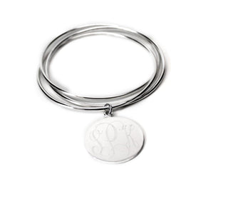 Sterling Silver Bangle Bracelet with engravable disc.