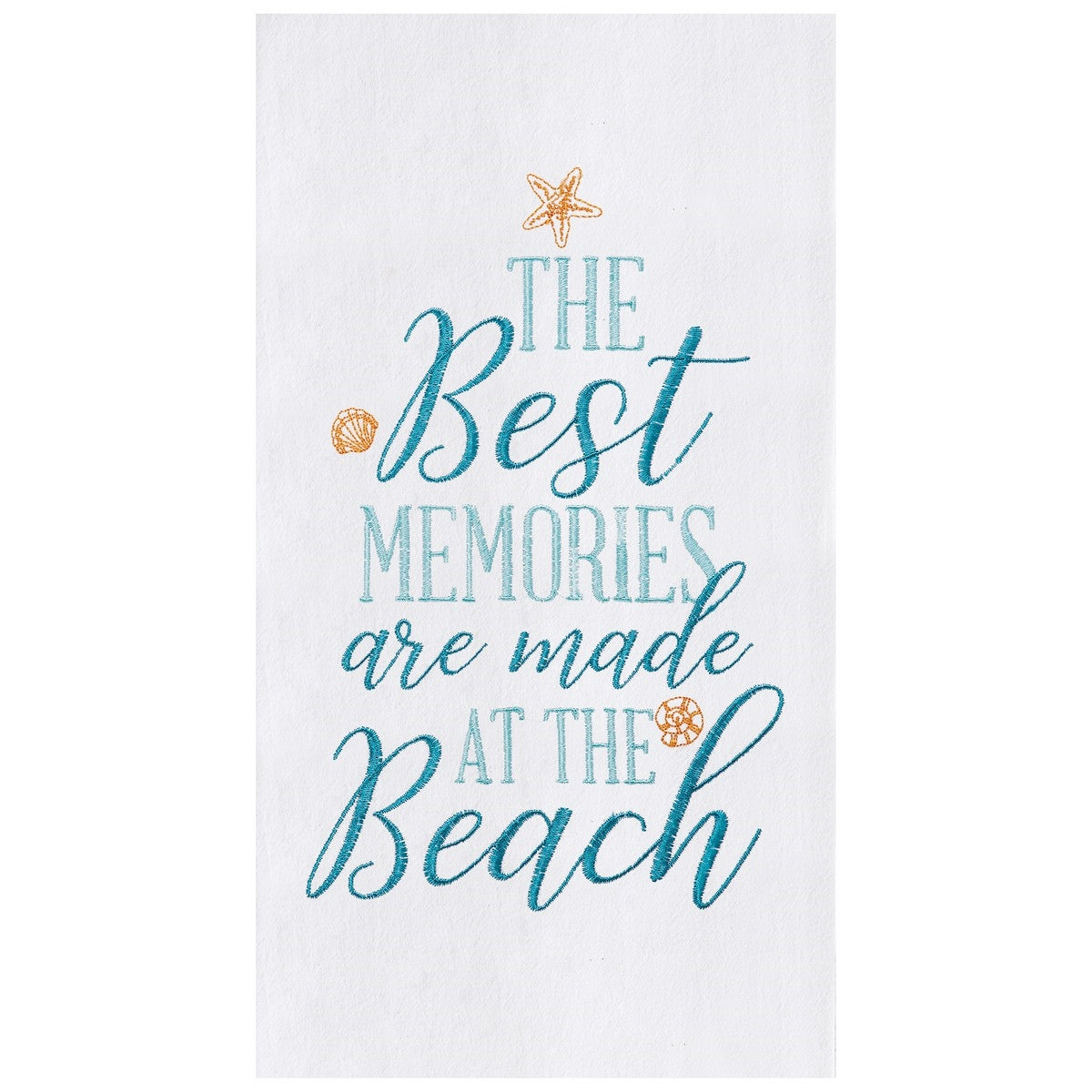 Complete your coastal theme or your beach house with the Best Memories kitchen towel. With marine blue and aqua embroidery and starfish, shell, and nautilus motifs, this towel will coordinate perfectly with your beach .
