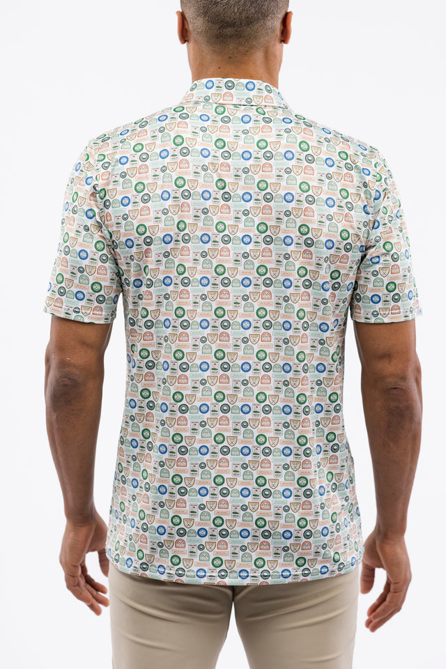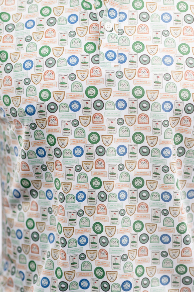 Shown here in Patch Play White. Made in lightweight performance fabric.