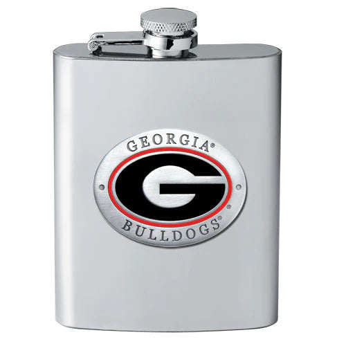 This 8 ounce stainless steel flask is embellished with a fine pewter casting. Assembled in USA.